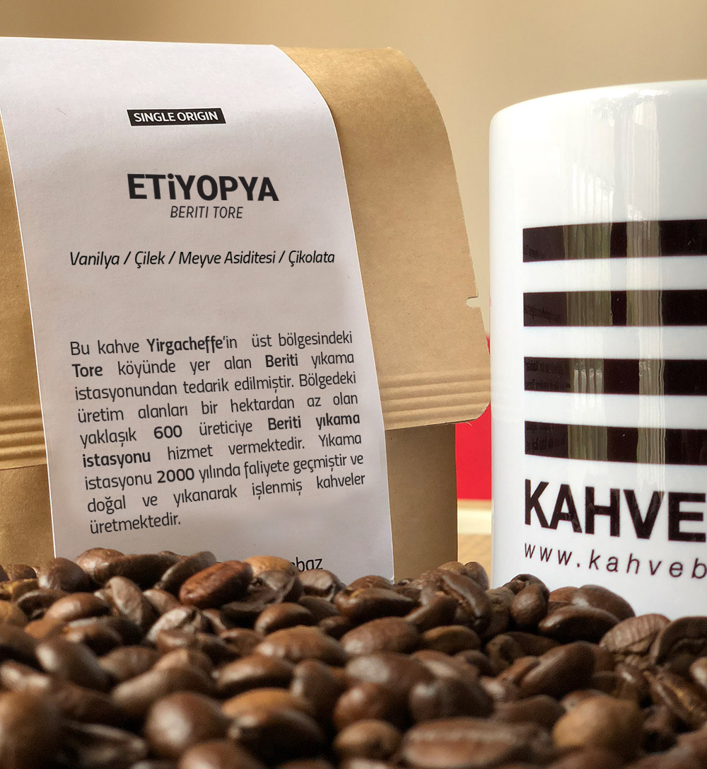 Etiyopya Beriti Tore, Yirgacheffe’in üst bölgesindeki Tore köyünde yer alan Beriti yıkama istasyonundan tedarik edilmiştir. Bölgedeki üretim alanları bir hektardan az olan yaklaşık 600 üreticiye Beriti yıkama istasyonu hizmet vermektedir. Yıkama istasyonu 2000 yılında faliyete geçmiştir ve doğal ve yıkanarak işlenmiş kahveler üretmektedir. Bölgedeki çiftçiler kahveleri meyve şeklinde istasyona getiriyor ve kahveler burada ayrıştırılarak işlenmeye başlanıyor.